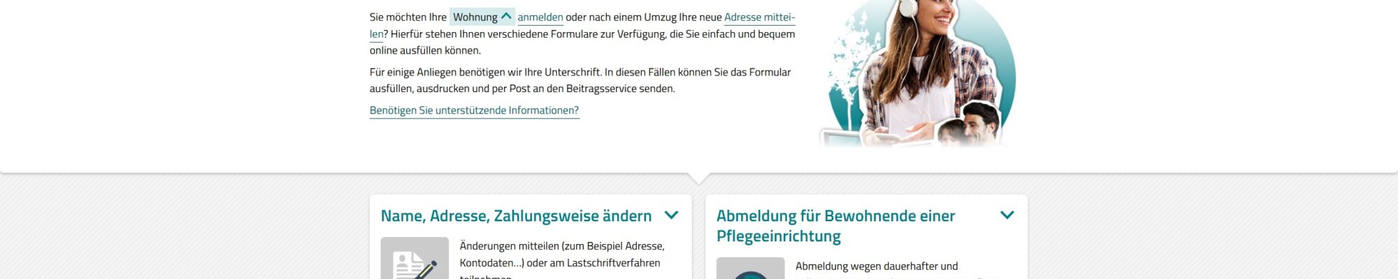 • Online-Kontaktformular auf der Website des Beitragsservice